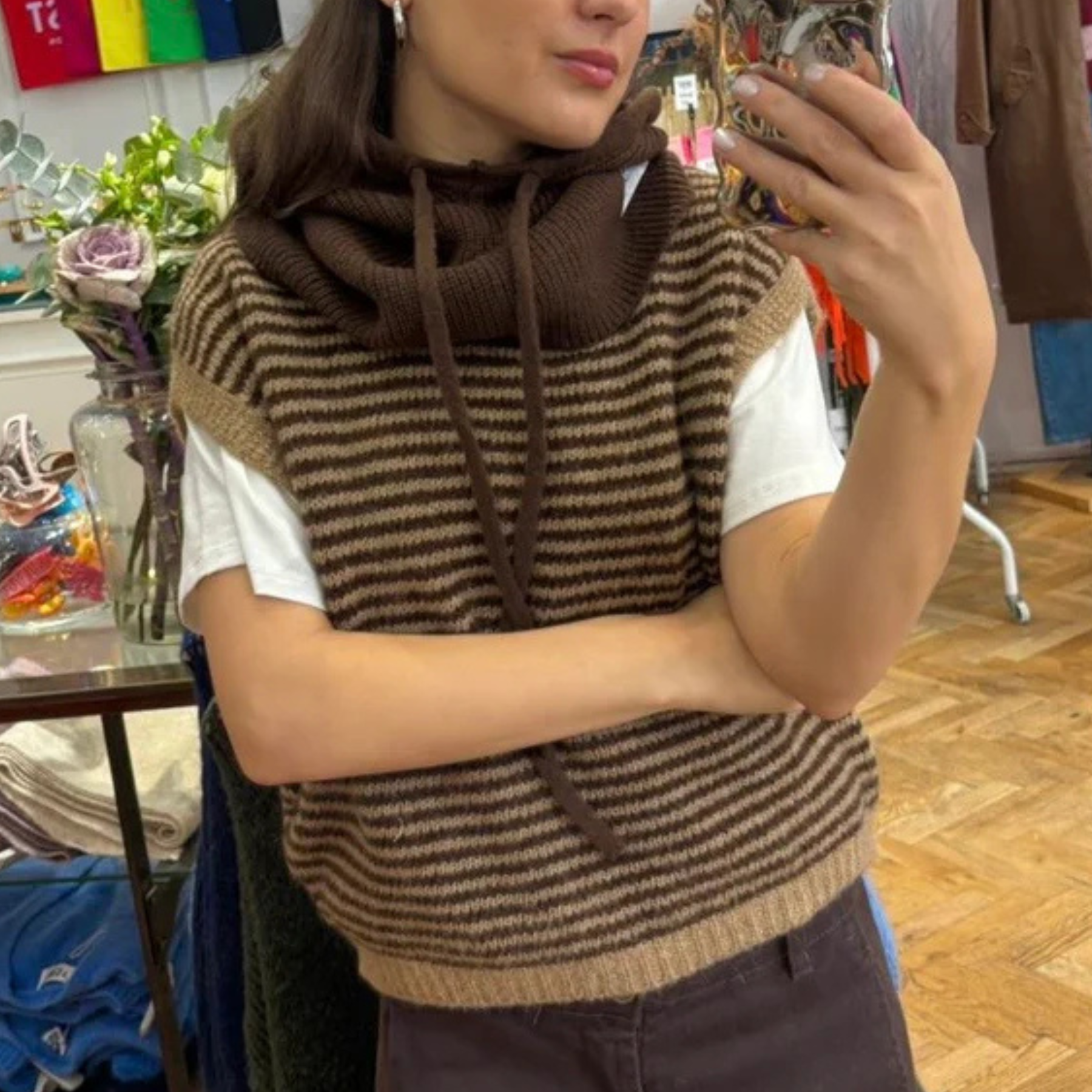 Crafted in Italy from a soft, lightweight wool blend, the Alma Striped Vest is a timeless layering piece designed for effortless style. Its fine contrasting stripes and ribbed trims at the neckline, armholes, and hem create a polished, refined finish, while the relaxed boxy fit makes it perfect for layering over shirts, blouses, or dresses.
