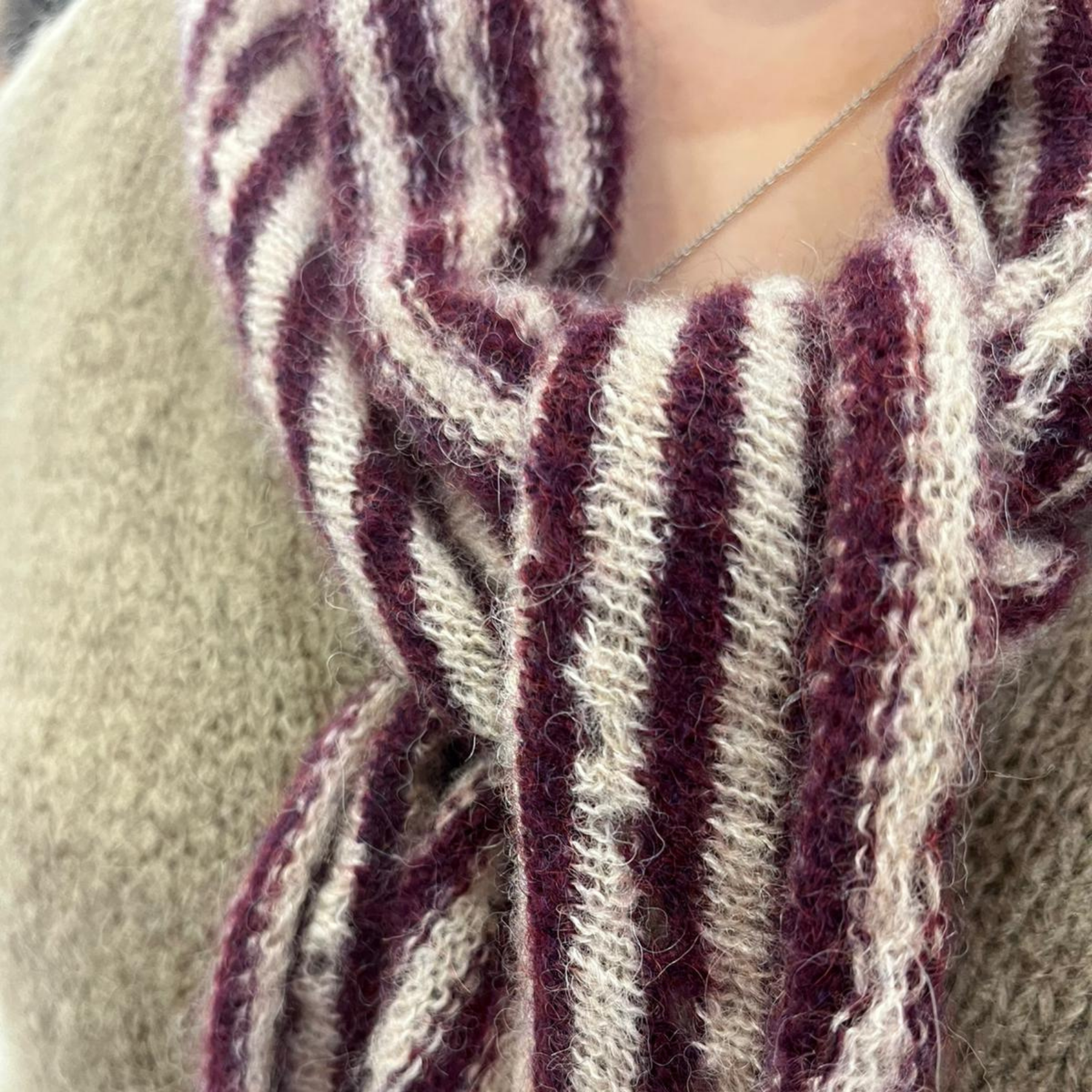 Thoughtfully designed in a chic plum stripe, its delicate picot knit pattern adds subtle texture and sophistication to any outfit.