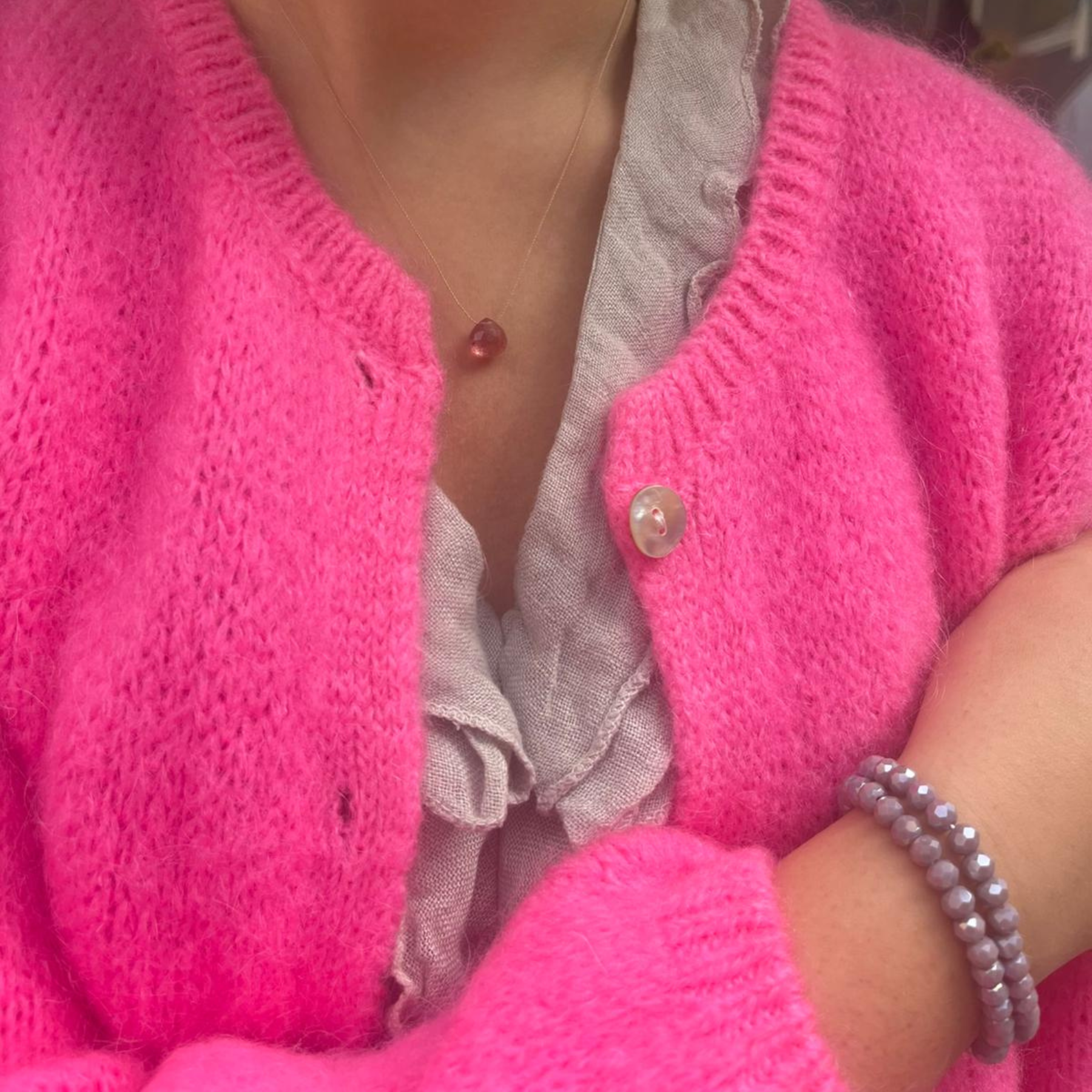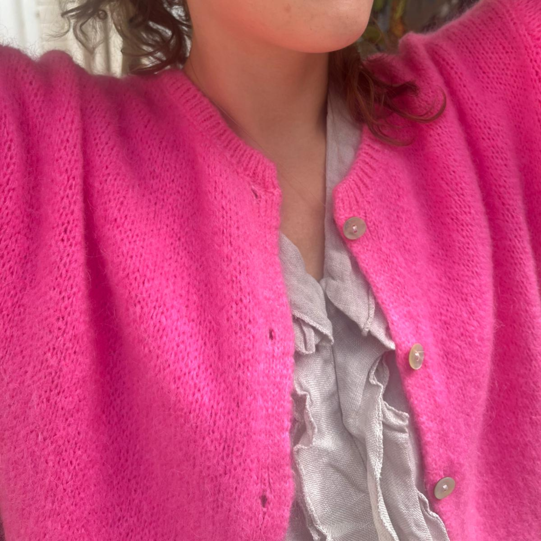 Mohair Blend Button Through Cardigan - Barbie Pink