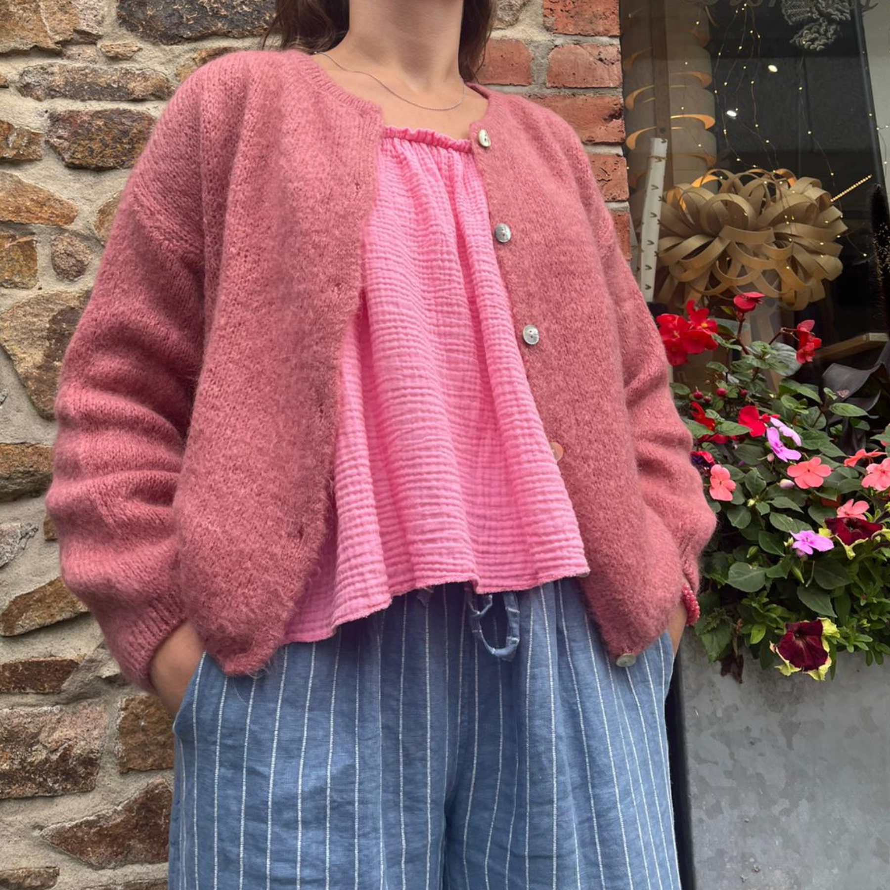 Bellerina Paris Alpaca Blend Button-Through Mohair Cardigan - Rose Pink