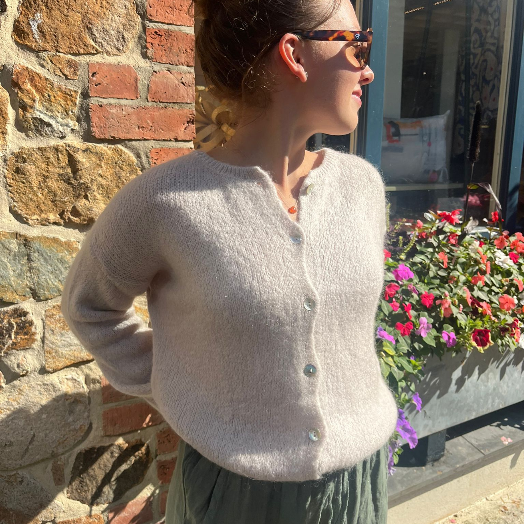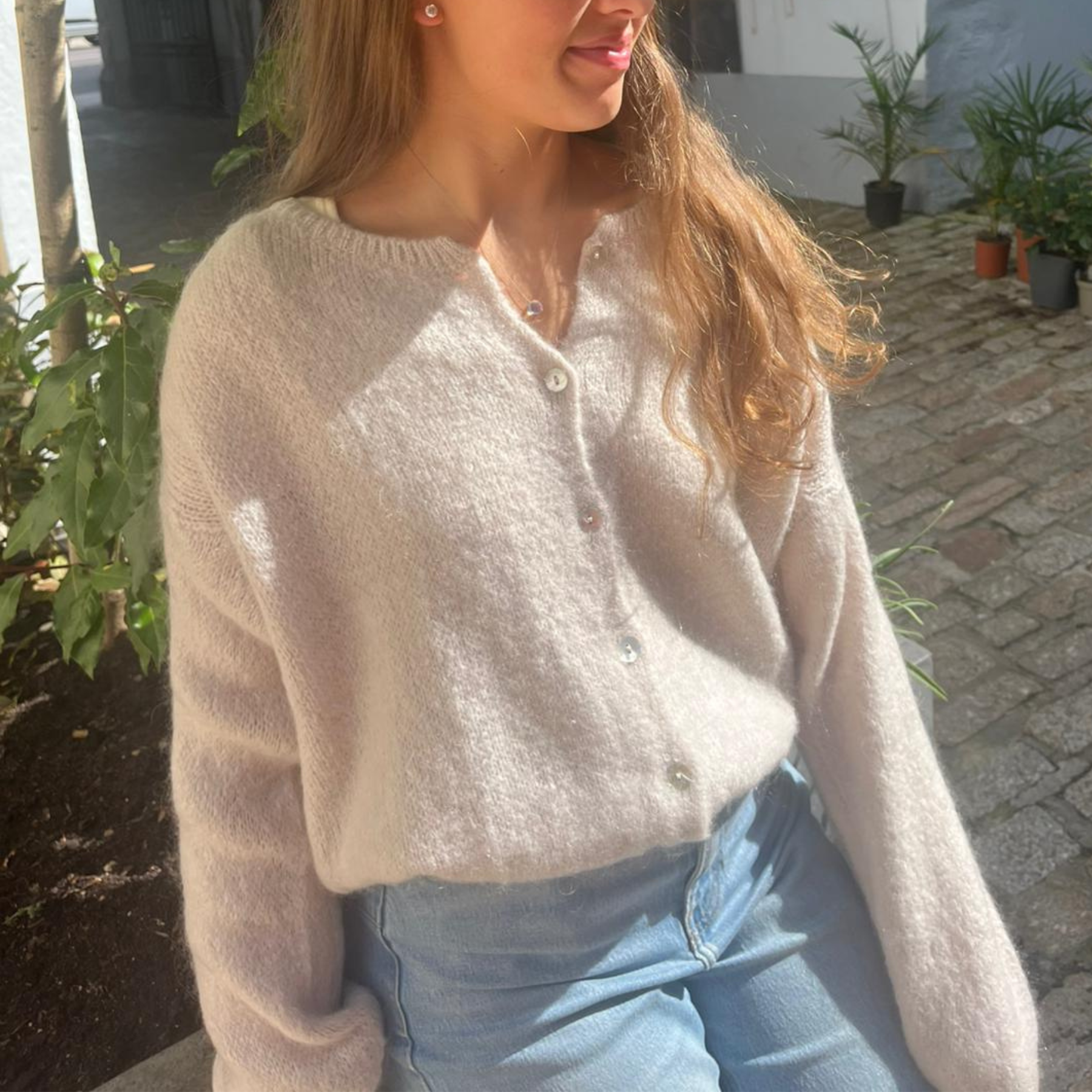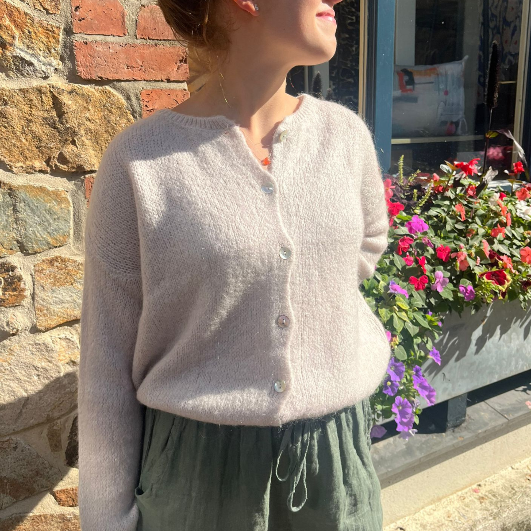Mohair Blend Button Through Cardigan - Stone