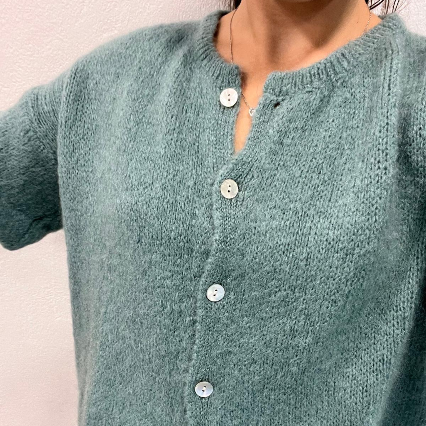 Mohair Blend Cropped Sleeve Cardigan - Duck Egg