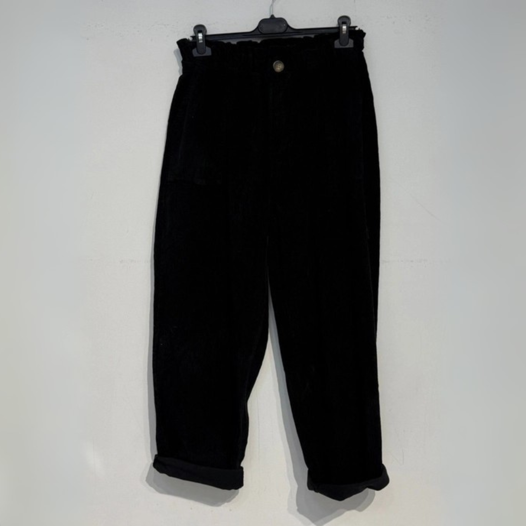 NOELINE Black Corduroy Trousers with Button – Made in Italy