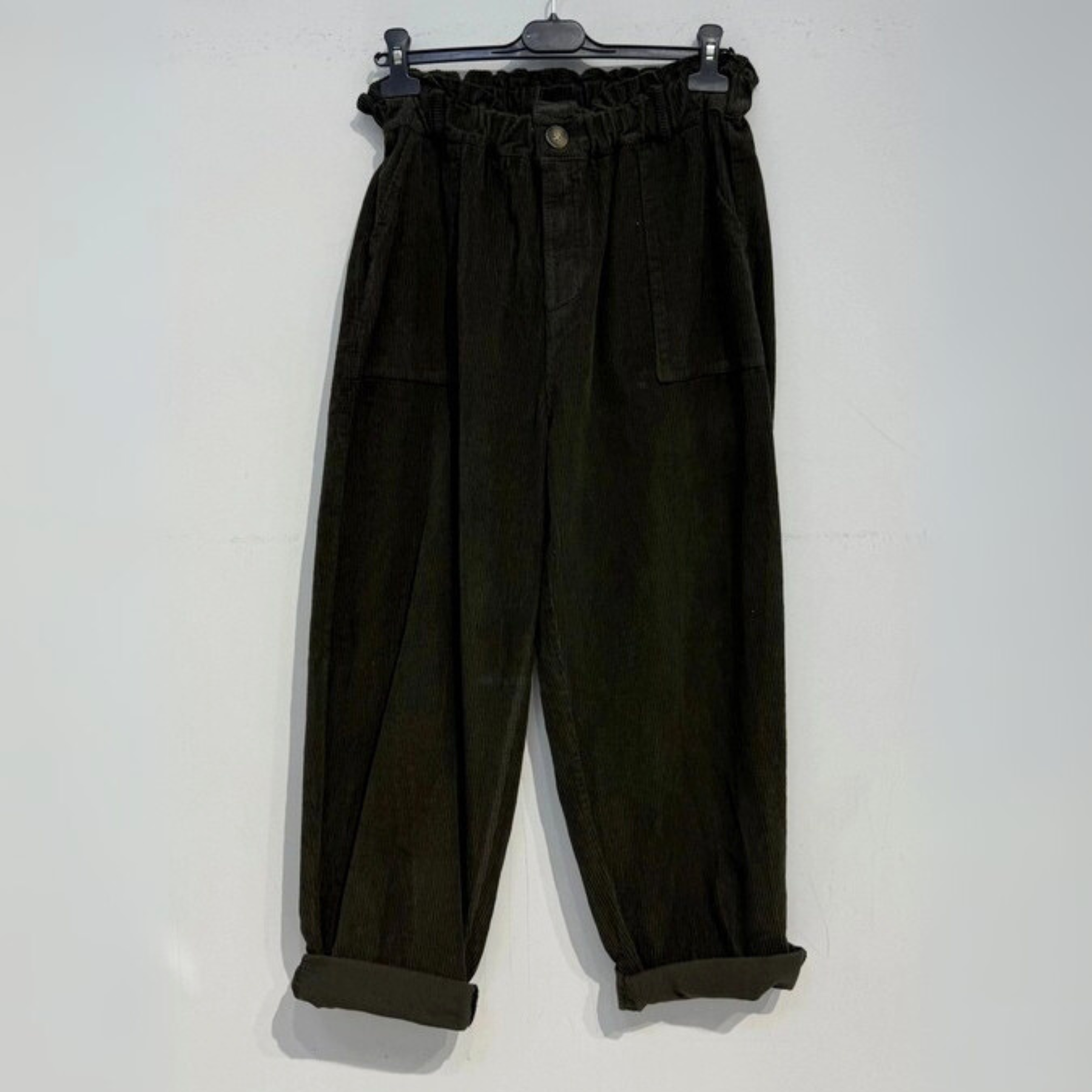 Corduroy Trousers with Button - Chocolate Brown