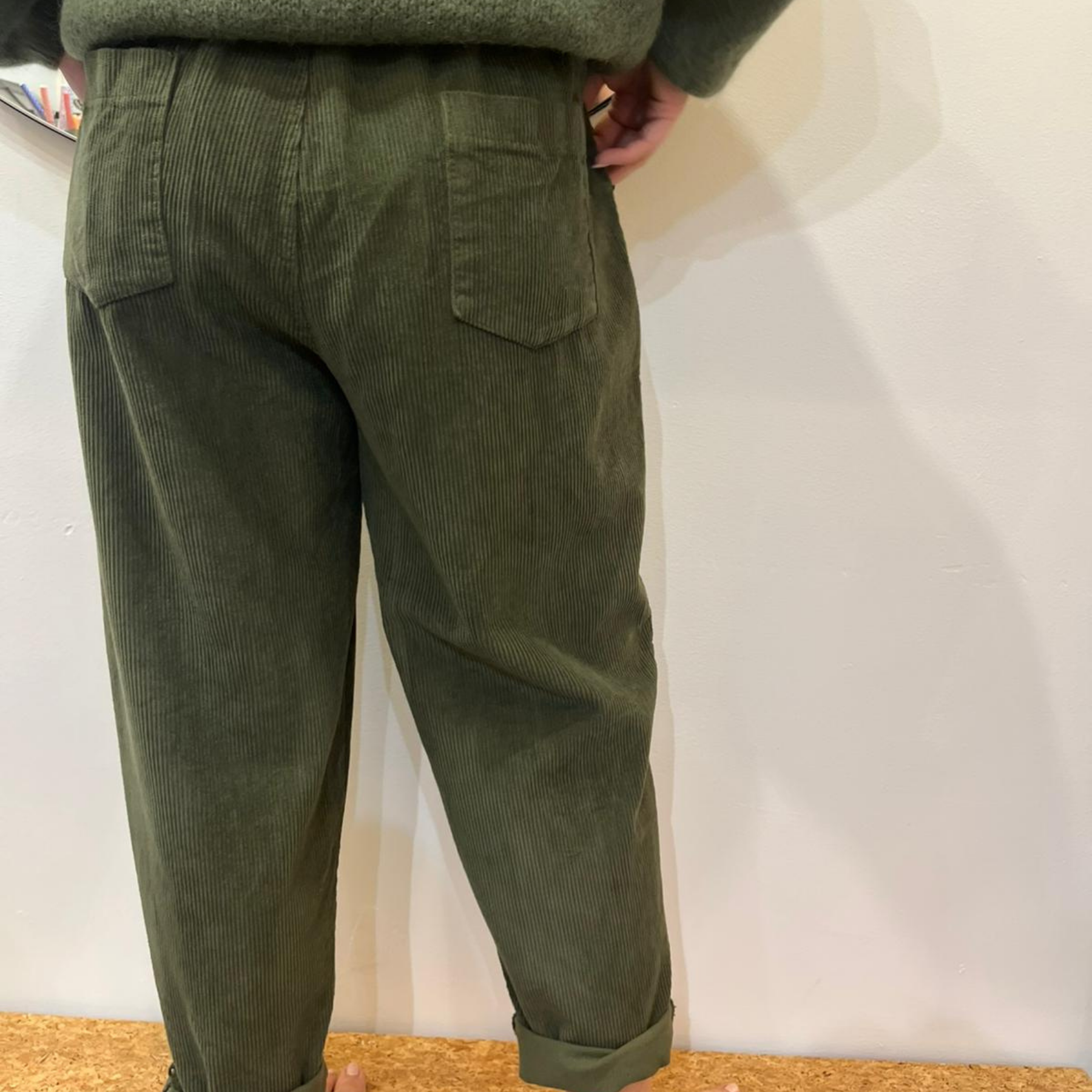 NOELINE Dark Green Corduroy Trousers with Button – Made in Italy