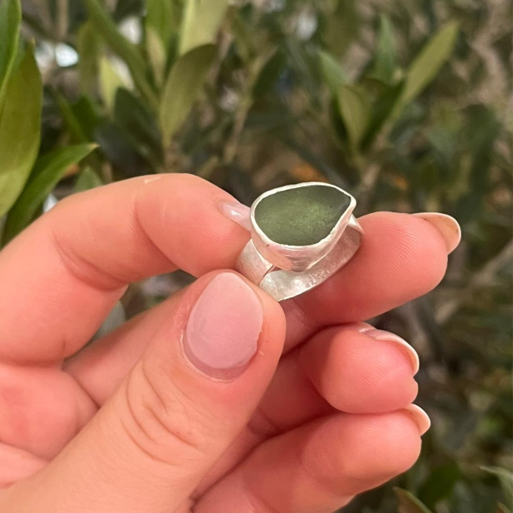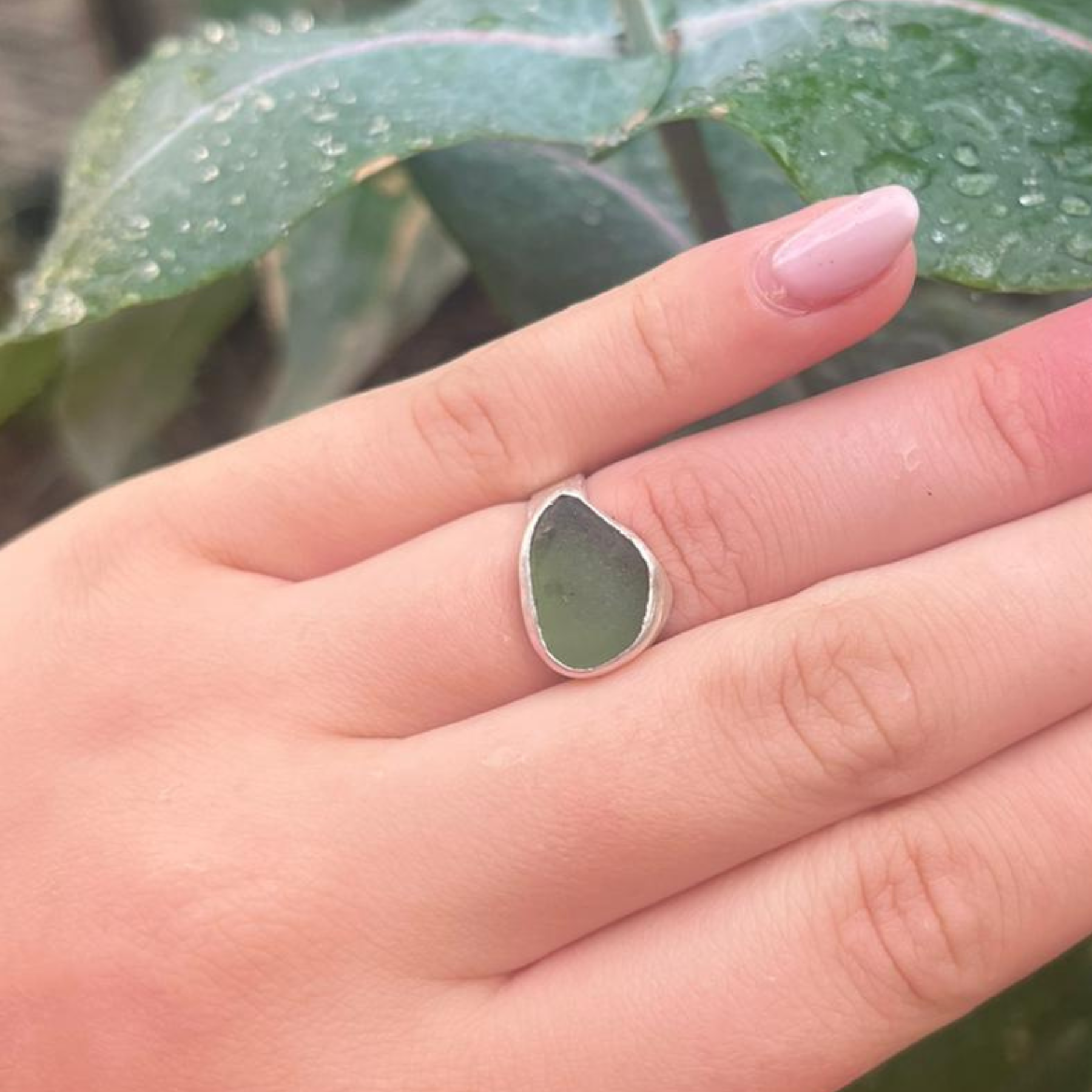 Sarah Drew Jewellery Green Sea Glass Eco Silver Ring