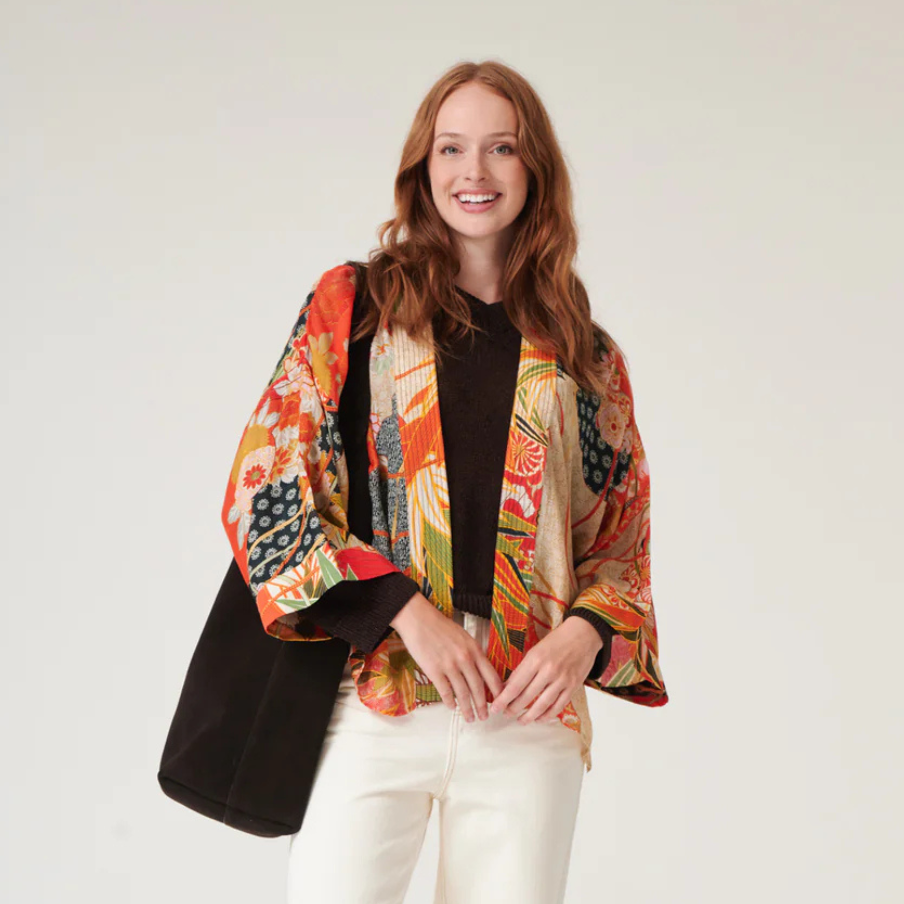 Short Kimono Style Jacket with 3/4 length sleeves.