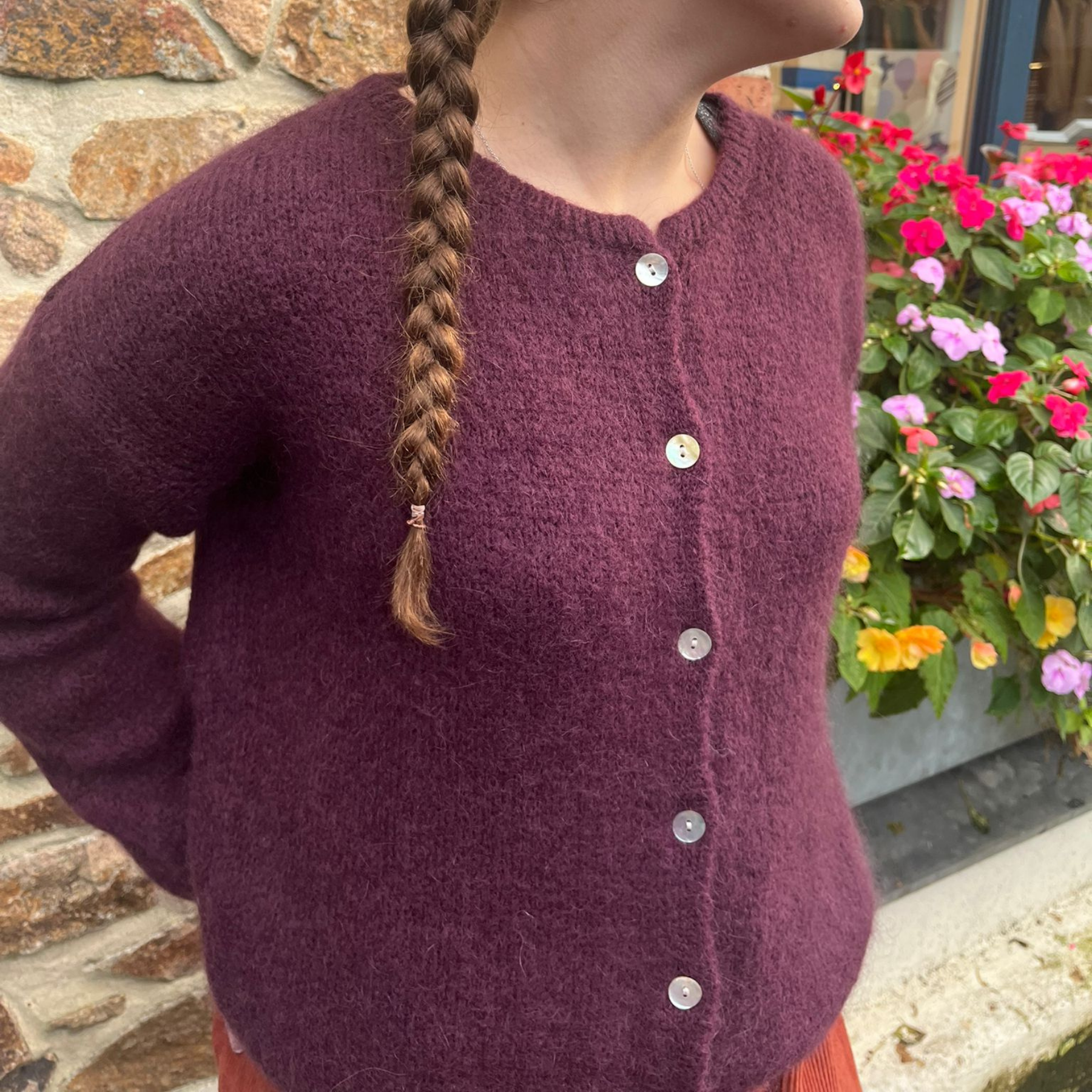 Bellerina Paris Alpaca Blend Button-Through Mohair Cardigan - Prune Purple