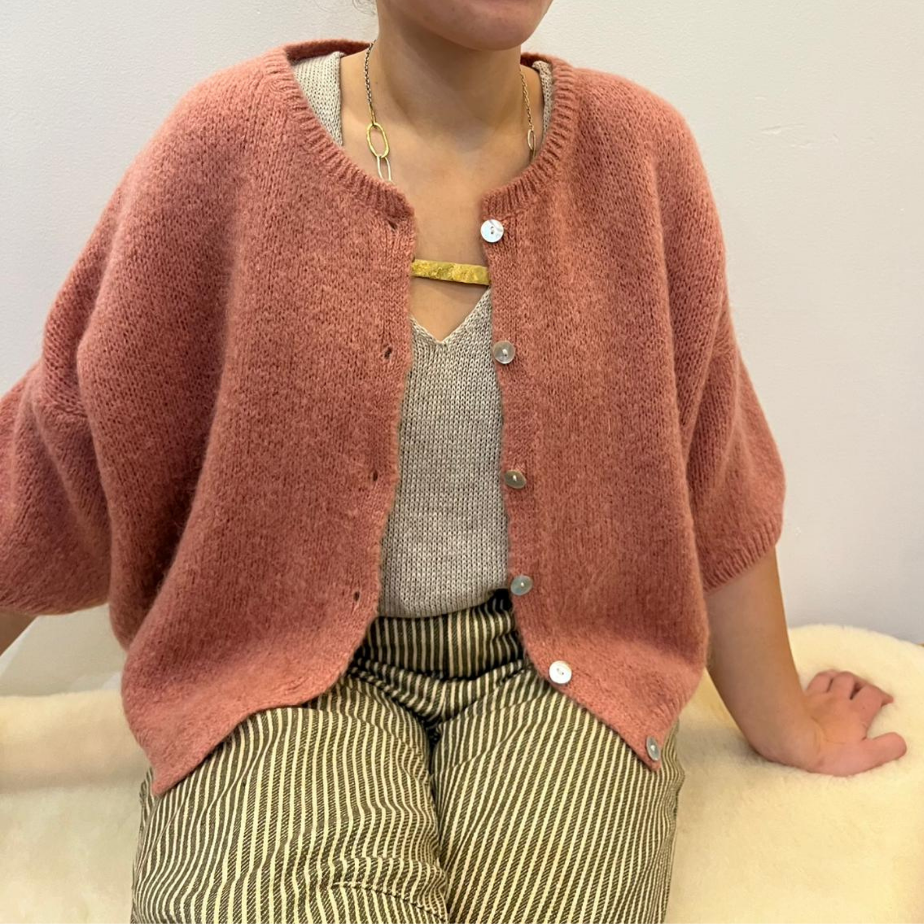 Mohair Blend Cropped Sleeve Cardigan - Rose