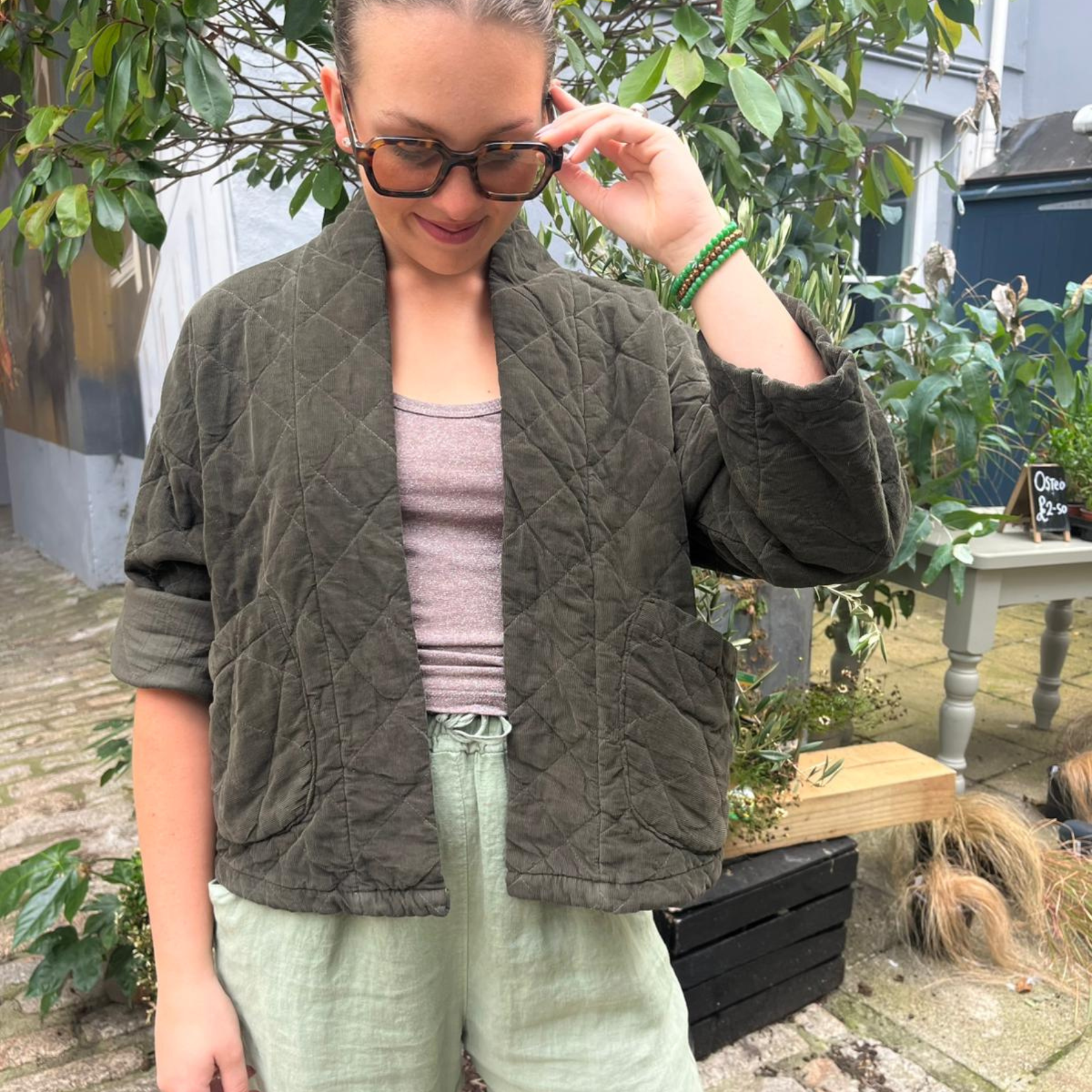 NOÉLINE Needlecord Quilted Jacket - Khaki Green