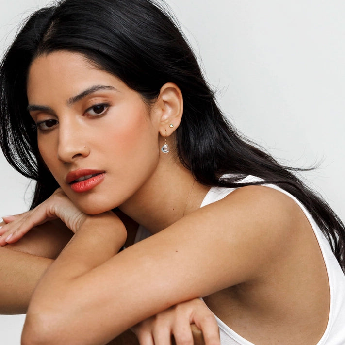 Minimalist stud earrings set with solo semi-precious topaz gemstones. A meaningful birthstone gift for November birthdays or a perfect addition to your jewellery collection.