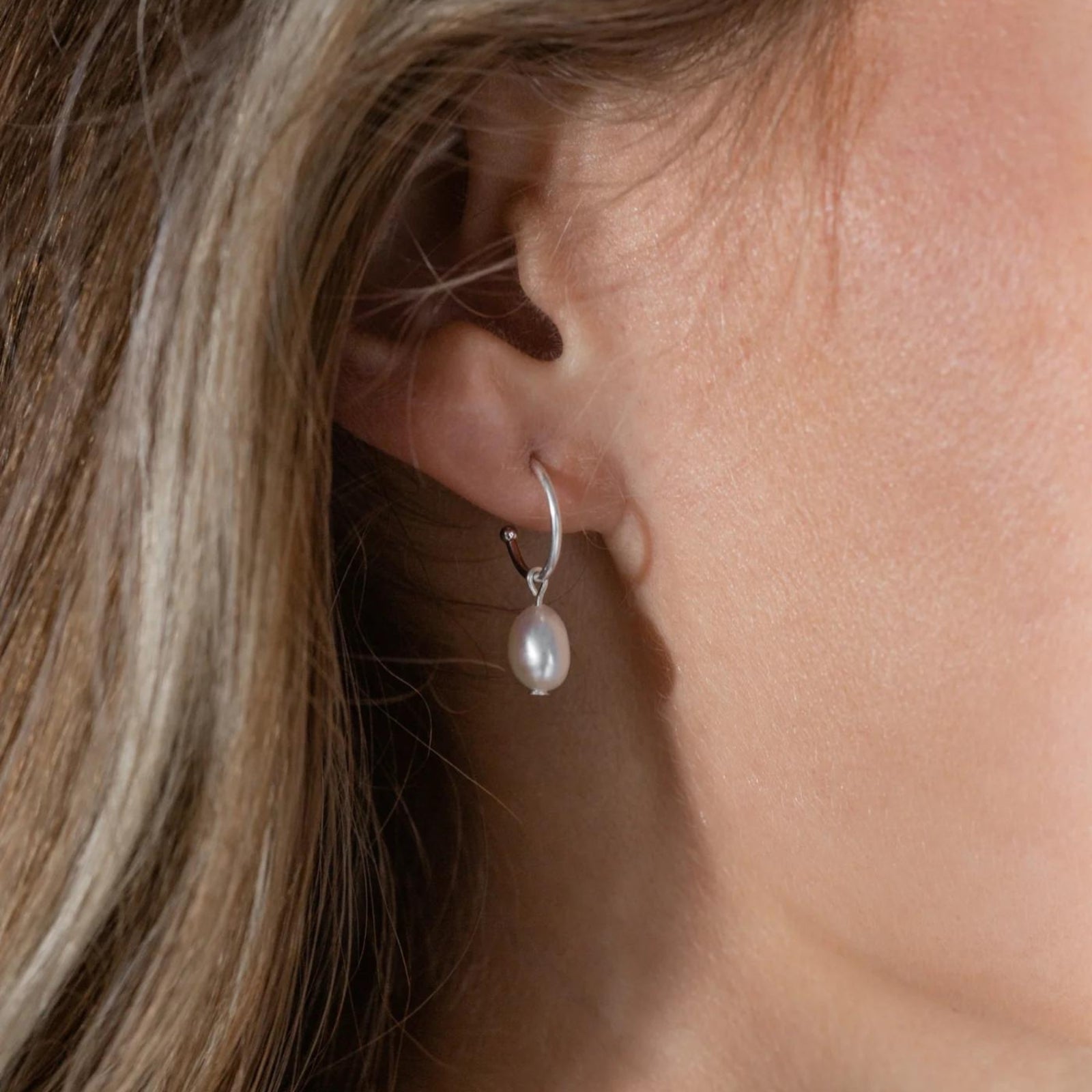 Silver Drop Earrings - Pearl