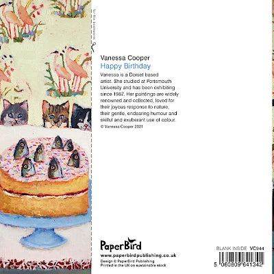 Paper Bird Publishing Happy Birthday Cats Fish Cake Greetings Card