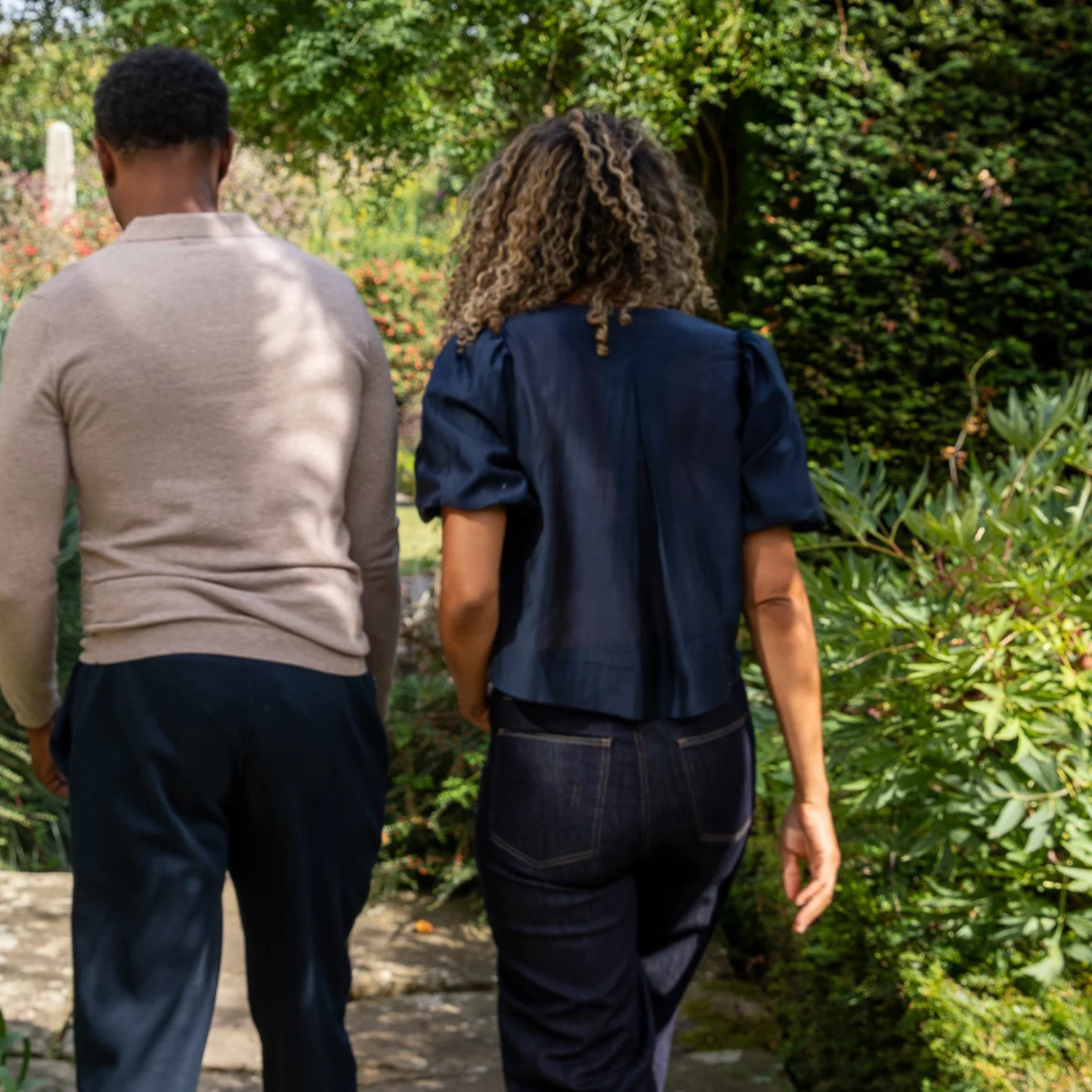 Slightly cropped length, ideal with high-waisted trousers or skirts